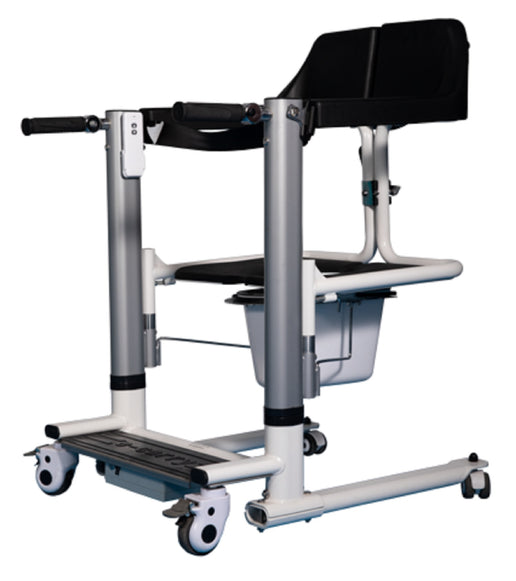This machine is a convergence of four essential tools: it functions seamlessly as a patient lift, commode chair, wheelchair, and shower chair.